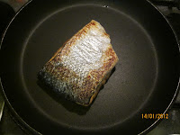 Ho fatto cuocere entrambi i lati girandoli più volte, poi ho tolto il trancio un attimo dal fuoco per togliergli la pelle e dividere in due il trancio per far si che cuocesse meglio dentro.